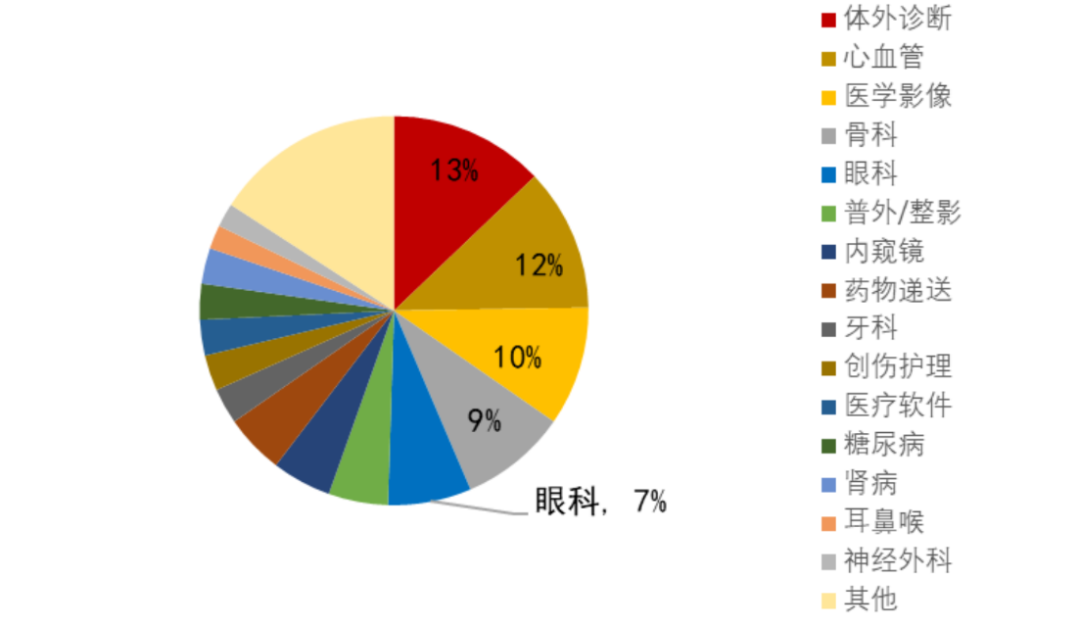 眼科医疗器械在整体医疗器械领域中需求量靠前。根据华经产业研究院,2019年全球眼科医疗器械市场规模在全球整体医疗器械中排名第五,比重约为7%;在专用耗材领域排名第三,仅次于心血管和骨科。根据《2019中国医疗器械蓝皮书》,眼科高值医用耗材包括人工晶状体、人工视网膜、人工玻璃体、人工泪管、人工角膜、角膜塑形镜(非手术治疗)等;按产品使用类别可以分为眼内用耗材、眼表用耗材和其他耗材。